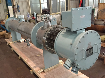 防爆電加熱器是一種消耗電能轉換為熱能,來對需加熱物料進行加熱。在工作中低溫流體介質通過管道在壓力作用下進入其輸入口,沿著電加熱容器內部特定換熱流道,運用流體熱力學原理設計的路徑,帶走電熱元件工作中所產生的高溫熱能量,使被加熱介質溫度升高,電加熱器出口得到工藝要求的高溫介質。